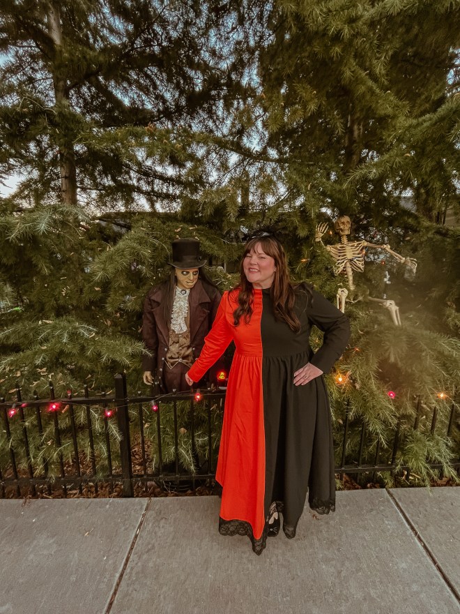 Okaaaaay, the Halloween clothes from Unique Vintage have been getting better and better every year. I instantly saw this orange/black nearly floor length dress and knew I HAD to have it. It will forever be my ghostess with the mostest dress LOL.