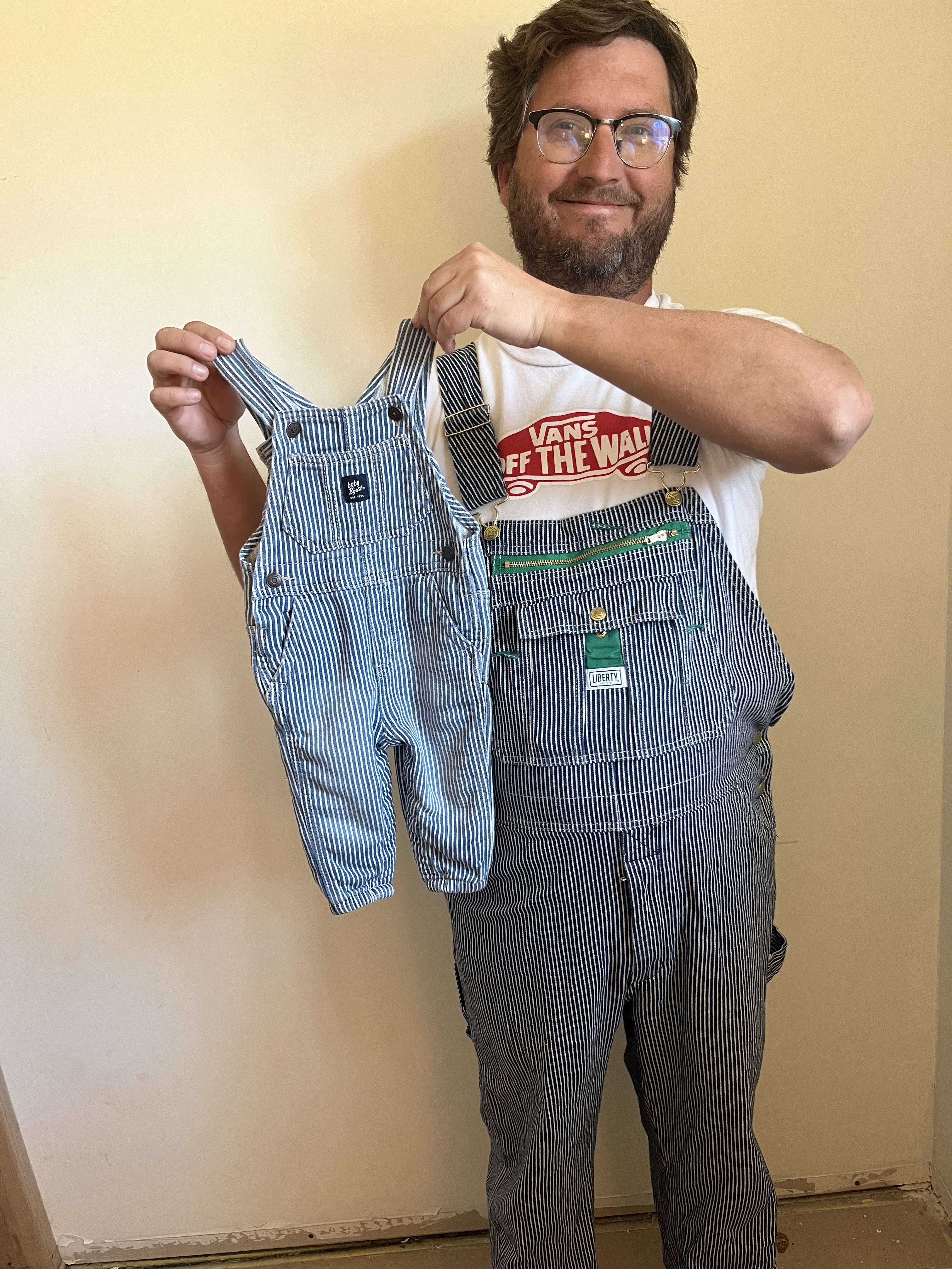 One of the first things David did was buy our baby boy a matching pair of striped overalls to his striped overalls which I tolerate LOL. Pretty damn adorable, I must say.