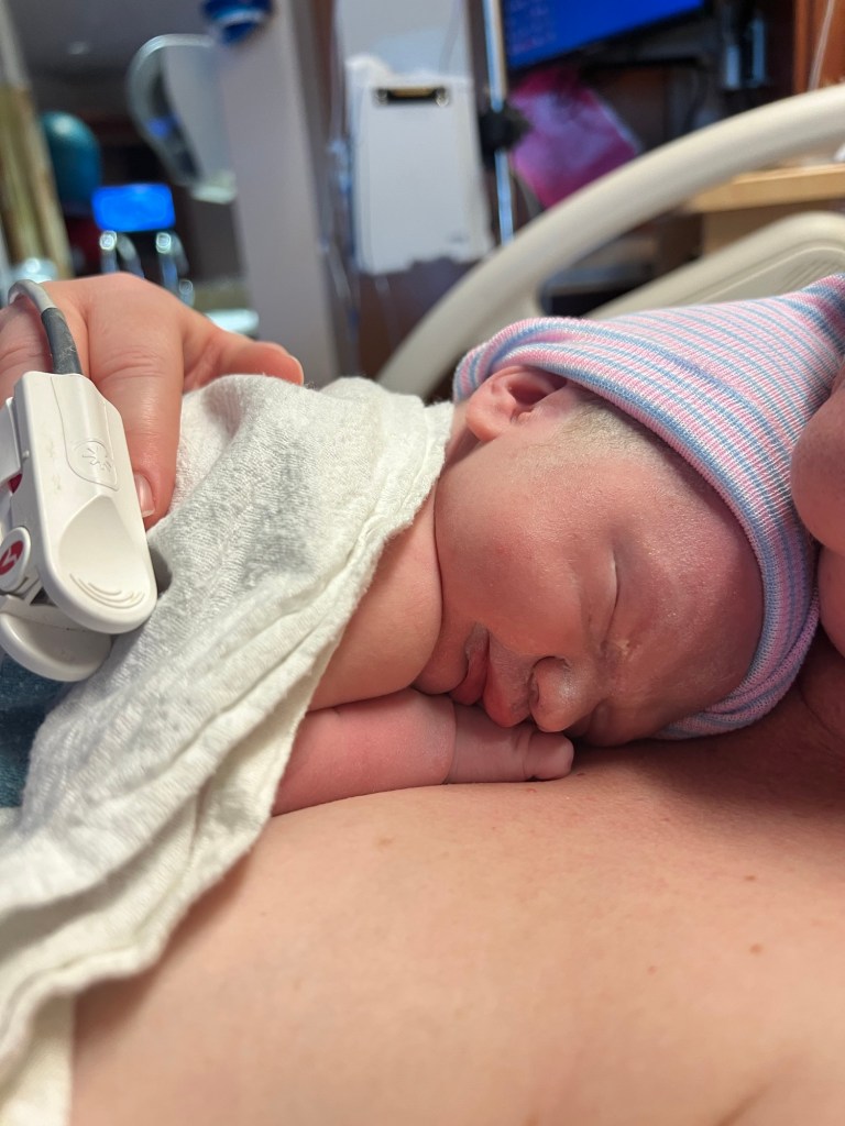Things started to move swiftly. I was able to get an epidural before they broke my water so I literally had a painless labor. It also went a lot quicker than anyone expected. It seemed like I kept pleasantly surprising the staff. By 11 a.m. the next morning, I was dilated to a ten and the labor and delivery nurse asked me “Are you ready to meet your baby?” which made me beyond emotional.