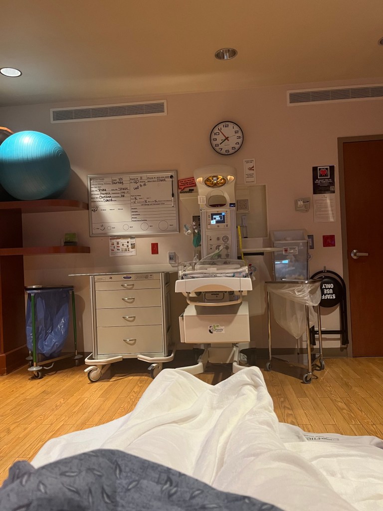 Then my labor nurse seemed shocked as she checked the monitor. I was calmly sitting there, all calm and clueless in my goofy, fuzzy socks when she asked if I was feeling anything. Physically, not a thing. Mentally, though… She directed me to look at the monitor and showed how I was having fast and regular contractions. To my astonishment, I literally did not feel a thing!