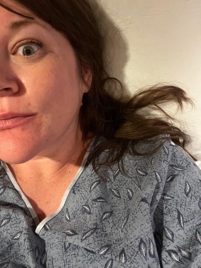 Yes, I know for a 38 year old that sounds dramatic but the unknown is medieval torture for me, and pushing a human body out of my vagina just seemed a tad intense at the time. But suddenly there I was in a hospital gown with goofy fuzzy socks on, getting attached to an IV and monitor.