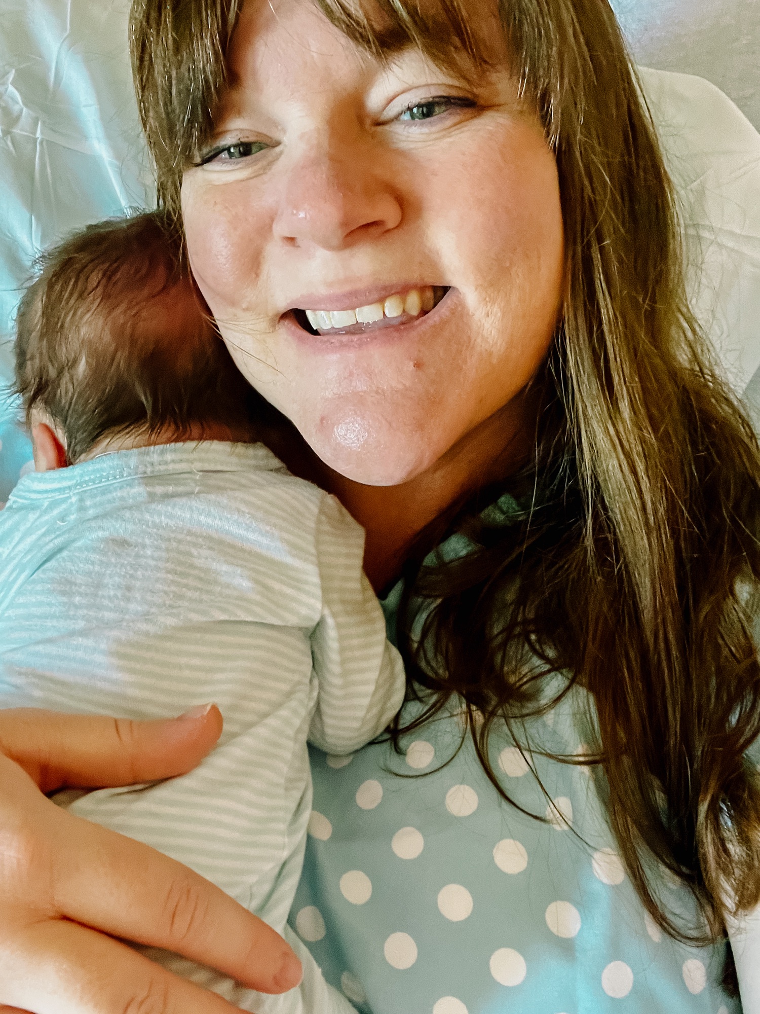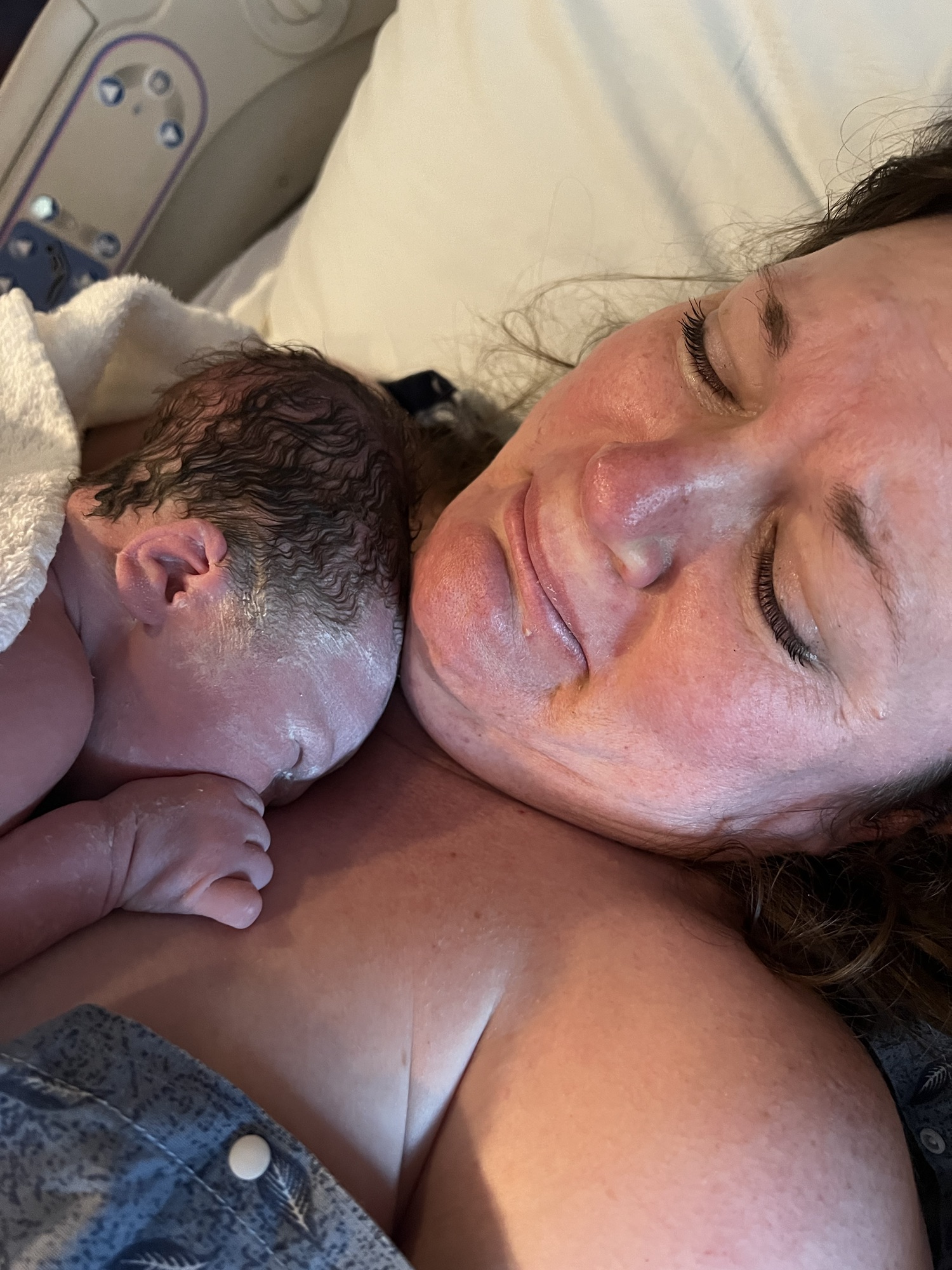 And then suddenly there he was, my little boy. David cut the cord, and then he was nestling on my chest. He had the cutest little cry, a head full of hair, ten fingers, ten toes.
