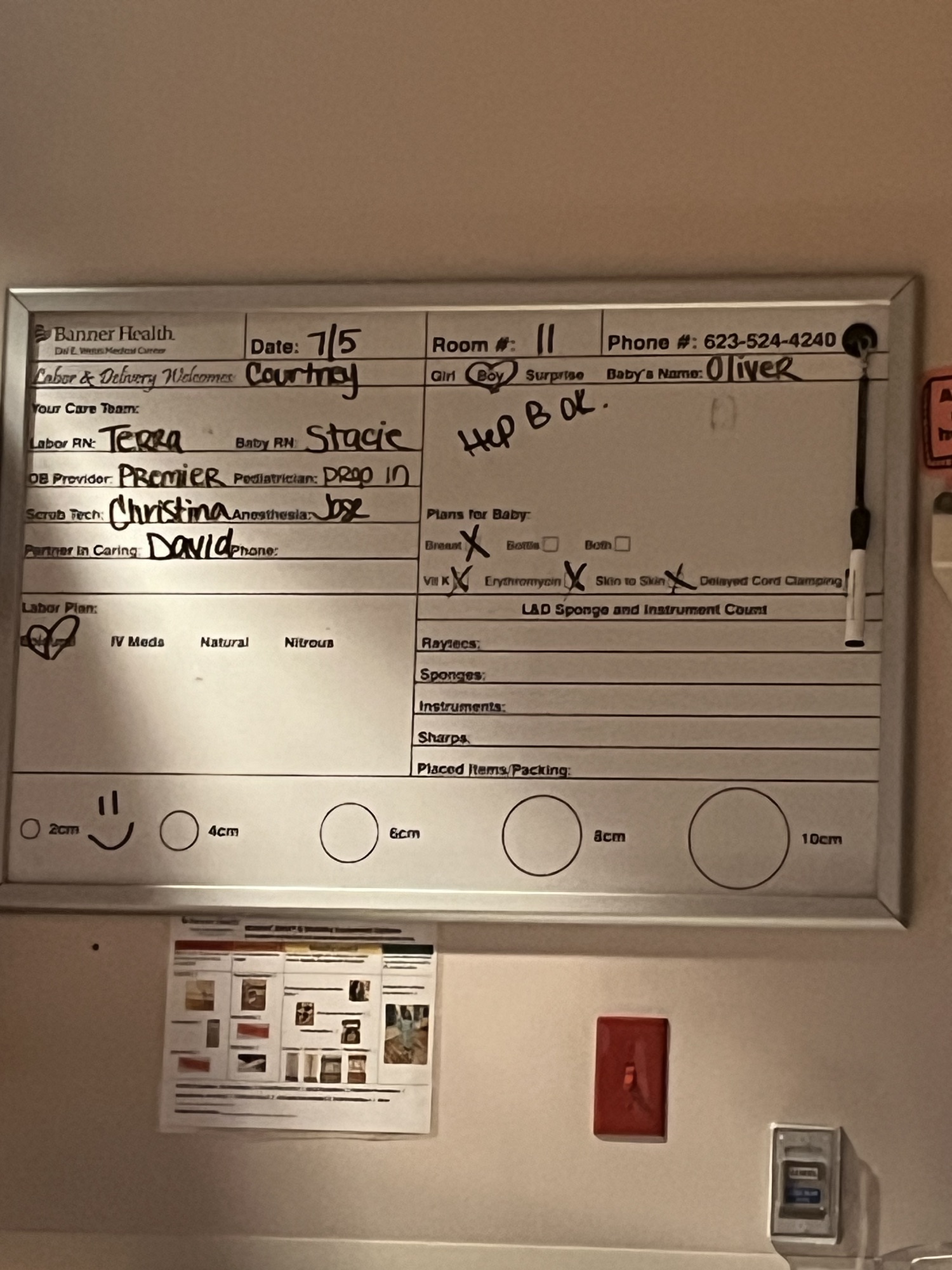 The office told us we could drive the 30 minute drive back to Wickenburg to pack and grab our hospital bags and drive back to Surprise, AZ to the hospital. Driving back into Surprise was like waiting in line to blast off into space, it just felt that enormous to me. When the hospital came into view I almost cried I was so scared.