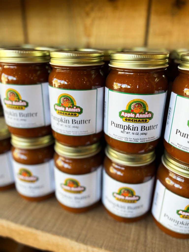 Some mushy, mushy context–Apple Annie’s in Willcox, AZ is where David and I went when we were still freshly dating, then we got engaged here, and now we just brought our first born baby here. Ohhh, the pumpkin spice memories of it all.
